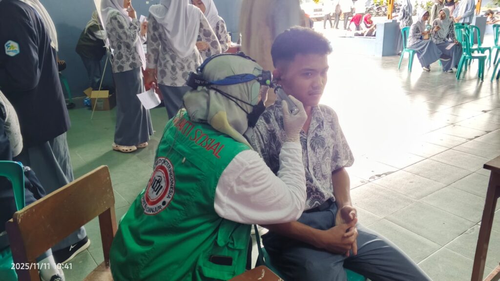 1. Nama Kegiatan : Kegiatan Layanan Masyarakat Cianjur Dalam Rangka Hari Kesehatan Nasional 2025 2. Waktu kegiatan : Selasa, 11 November 2025 3. Tempat Kegiatan: SMAN 2 Cianjur 4. Jenis kegiatan: Pemeriksaan dan Bersih Bersih Telinga 5. Kerjasama dengan : Komda PGPKT Cianjur, tim BBT IDI Kab Cianjur, RSUD Sayang 6. Hasil Kegiatan : 400 peserta, Serumen 76 orang orang. 7. Nama Anggota Perhati yg terlibat: